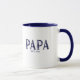 Papa coffee mug design with established year featuring a blue stamped font set on a white background. Click customise to edit the background colour!. Visit our shop to view this mug in a large assortment of grandfather names.