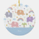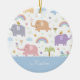 Give your little boy his own adorable pastel elephant pattern with this Christmas tree ornament. Ceramic ornament has purple, blue, and yellow elephants and a blue background behind the first name of your little kid on the front and the holiday year on the back. There are also rainbows, birds, clouds, hearts, and flowers.