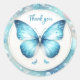 Blue Pastel Glitter Butterfly - Thank you - Classic Round Sticker