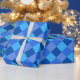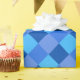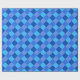 Blue squares like a patchwork quilt is the pattern of this wrapping paper.