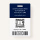 Classic, clean and simple employee name badge with custom logo, QR code, and barcode.