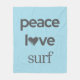 Blue Peace Love Surf Life | Coastal Surfer Graphic Fleece Blanket