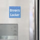 Blue peace signs line the top of this personalised locker magnet