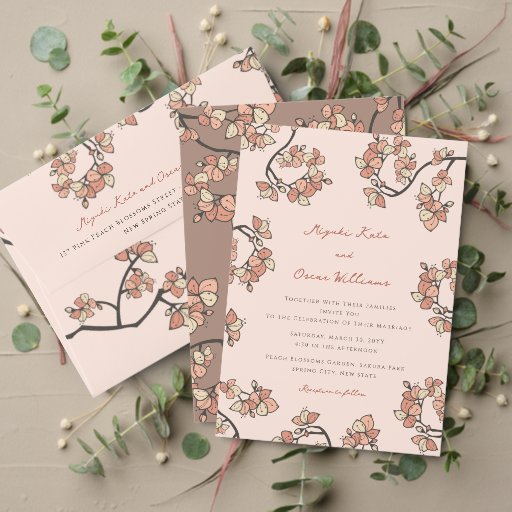 Blue Peach Blossoms Sakura Asian Wedding RSVP Card