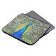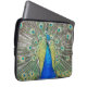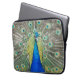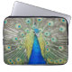 Protective, zippered laptop sleeve that features the photo image of a gorgeous, blue Peacock with colourful feather plumage. Image printed on one side. Select your laptop sleeve size. NOTE: Image is printed on one side of sleeve only.