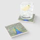 Protect your table top from water marks and stains with this stone beverage coaster with cork backing that features a photo image of a gorgeous, blue Peacock with colourful feather plumage. Select your coaster stone style.