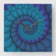 Blue hippie style spiral fractal art pattern created from a photo of a peacock feathers.