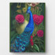 Blue Peacock in Pink Heart Rose Garden Plaque