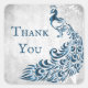 Seal your thank you cards with this elegant Blue Peacock Leaf Vine wedding thank you sticker. Sticker design features a light grey grunge background with a vibrant blue peacock with a leaf vine embellishment. Additional wedding stationery, wedding supplies, and party favours available with this design as well.