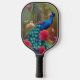 Blue Peacock, Pink Rose Garden Pickleball Paddle