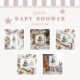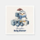 Celebrate a joyful winter baby shower with this charming design featuring a hand-painted penguin in a Santa hat and scarf, surrounded by stacked gift boxes and festive blue ornaments. The soft watercolor style and cool tones create a playful and cosy vibe—perfect for welcoming a baby boy during the holiday season.