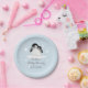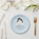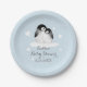 Cute penguin themed paper plates are perfect for your baby shower party. Designed to match penguin invitation collection, paper plates feature two penguins, scattered dainty white hearts and custom text in grey.