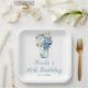 Beautiful birthday paper plate with blue peony flowers in a mason jar. Perfect for a birthday. The words can be changed to suit your own details or requirements
