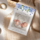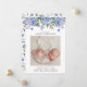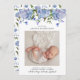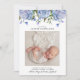 Rustic birth announcement card with a vertical photo of your newborn featuring watercolor illustration of light blue peony with greenery.