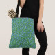 Blue Periwinkle Ditsy Floral Pattern on Green Tote Bag