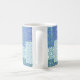 A chic Boho White Ceramic Coffee Mug, with a country-style Faux Patchwork of various pretty Periwinkle florals and coordinating Check Gingham patterns in Blue, Green and White. Part of the Posh and Painterly 'Periwinkle Patch' collection, this pattern can easily be adjusted to fit any Mug.