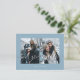 Personalised dusty light blue 2 best friends, weddings or family photos Universal Greetings Postcards featuring a stylish photo collage with 2 customised images, your greetings message in elegant handwritten script font, your name, date, year, message on the back in a modern and simple sans serif font.