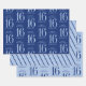 Shades of navy and light blue birthday gift wrapping paper with editable age number and personalised name plus a diagonal stripe accent sheet for an elegant and bold birthday present display.