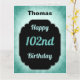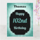Stylish blue and black personalised 102nd birthday design greeting card.