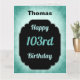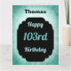 Stylish blue and black personalized 103rd birthday design greeting card.