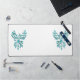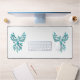 Blue Phoenix Rises on White Desk Mat