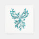 Blue Phoenix Rises on White Napkin