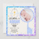 Announce the birth of your precious little one with our Aqeeqah Invitation cards. These cards feature a timeless design, showcasing a charming illustration of blue toys and sauras, accompanied by blue glitter, and essential details like the baby's name, time, date, venue of aqiqah and a personalised photo of your baby. The soft and soothing colour palette adds a touch of serenity to the announcement, making it a cherished keepsake for friends and family. Simply add your event details on this easy-to-use template to make it a one-of-a-kind invitation.