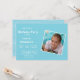 Add your favourite photo of the birthday honoree for a one of a kind birthday invitation. This Blue colour invitation is sure to please any birthday girl. Use our easy template to add your birthday party details. Photo will fit properly when you replace the sample image. If you have problems, send me a message through the designer contact button.