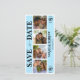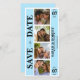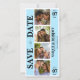 Blue wedding save the date card with photo booth styled picture collage. Personalise with your personal wedding details and newlywed couple photographs.