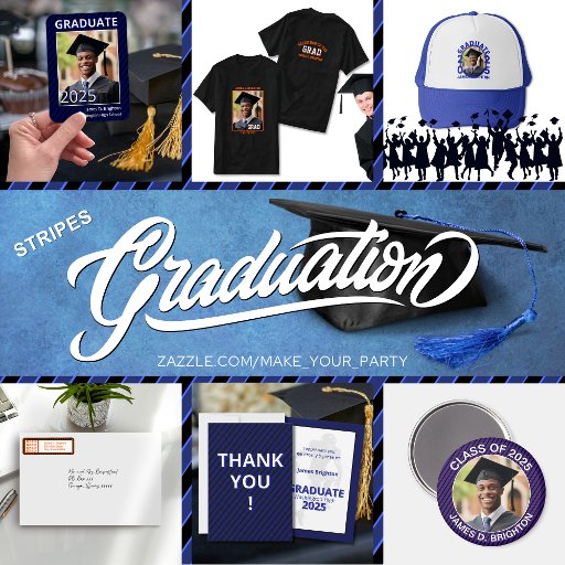 This blue striped photo Graduation banner is just what your grad needs to see welcoming them into their home, party, event.