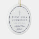 Blue Photo Religious Cross Boy First Communion Ceramic Tree Decoration