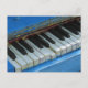 A blue piano along the 16th street mall in Denver Colorado. There are several pianos along the mall that people can play.