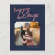 Blue Pink 1-Photo Happy Holidays Script Holiday Postcard