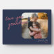 A heartfelt, minimalistic 1-photo holiday gift photo plaque with vintage vibes in pink and blue your custom message in a fun, casual script font. Personalise with your photo, name, year and message of your choice. The colour palette is a fresh mix of pink and deep blue, adding a modern twist to traditional holiday hues. Makes a great gift for grandparents, aunts, uncles and other special people in your life. Part of a collection from Parcel Studios.