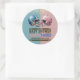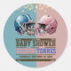 Blue & Pink American Football Helmet Baby Shower Classic Round Sticker