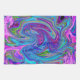 Blue, Pink and Purple Groovy Abstract Retro Art Tea Towel