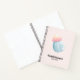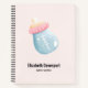 A personalised spiral notebook with a cute image of a light blue baby bottle with a pink rim.