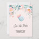 Blue & Pink Baby Bottle with Flower Border Save The Date