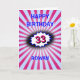 The background for this eye-catching birthday card is an explosion in deep pink and pale blue, with a blue-edged burst to emphasise the number. There is a vintage comic retro vibe to the design with crisp bright colours and text. Edit the Happy Birthday greeting on the front, edit the number, change the name, and personalise the message inside as well (currently this reads simply "It's just a number...").