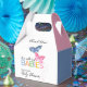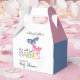 A cute butterfly themed baby shower favour box featuring a blue butterfly and a pink butterfly perfect for a twins (boy and girl) baby shower. The design offers space to say "thank you" to your shower guests and personalise with the name of the mother-to-be.