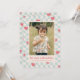 A festive Valentine's Day card with pink hearts scattered over a light blue chequerboard design. The message and customer information is placed beneath a large photo, and the back of the card features a coordinating pattern.