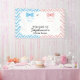 Blue and pink chevron gender reveal with bow and bow tie banner. The design features a blue and pink chevron pattern and a white shape in the middle with a bow tie and your custom text.