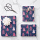 Blue & Pink Christmas Tree Pattern Wrapping Paper Sheet