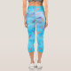 BLUE PINK COLORFUL LEAF PATTERN CAPRI LEGGINGS