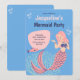 Blue Pink Cute Mermaid Party Birthday Invitation