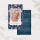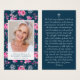 Blue Pink Floral Photo Memorial Prayer Card