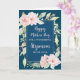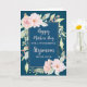 Happy Mother's Day card for stepmom with pink vintage watercolor flowers and navy blue background and heartfelt verse.