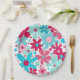 Funky blue & pink flowers with blue & pink polka dots on white background paper plates.
