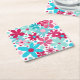 Blue & pink funky flowers square paper coaster