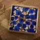 Big blue flower pattern on the front with pink and gold leaf detail. Modern and eye catching.